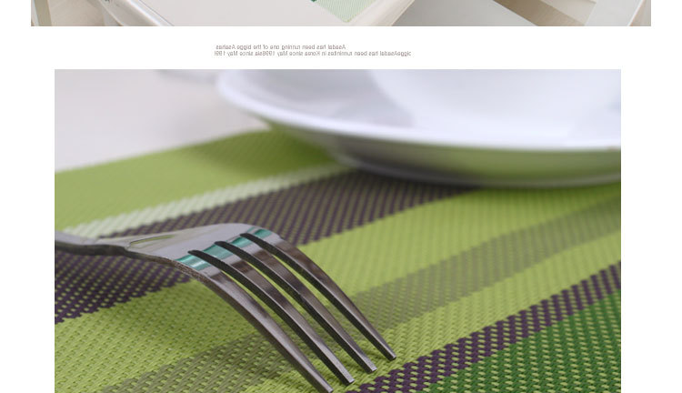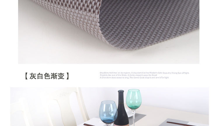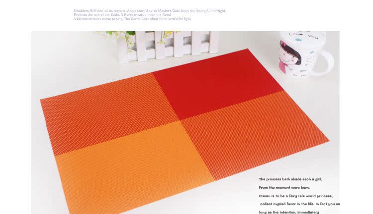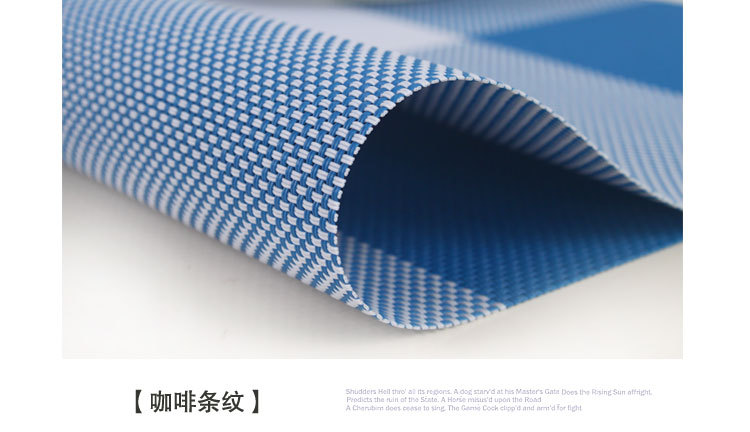 优质的PVC餐垫,耐热耐磨,抗菌阻燃,且具装饰和提升品位的作用。多种款式,每款都是精心设