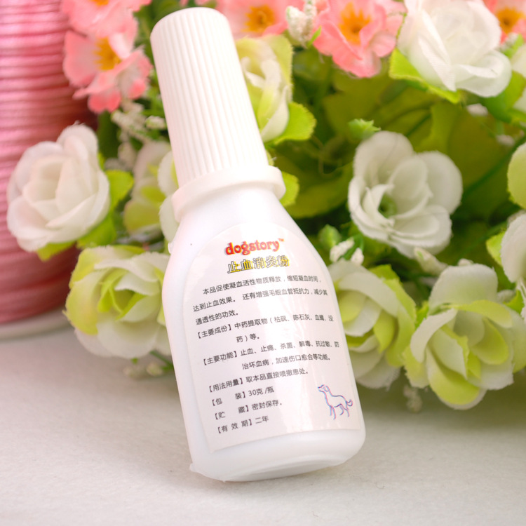 专业宠物美容师首选止血粉,2-3秒迅速止住因剪指甲意外造成出血。专供犬猫剪除指甲、手术、拔毛引起的轻微出血作止血用。亦可用于其它原因引起的轻微出血。