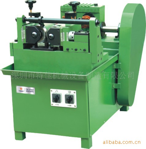 TB-3TGT特点: 1, 滚通、固定两用 2, 固定滚压时采用偏心式进刀挤压螺纹成型 3, 采用万向节连接、涡轮蜗杆传动,产品精度高 4, 针对止付、机米螺丝批量生产 5, 加上振动盘实现全自动、节省人力物力 型号 | TB-3TGT | 滚制螺丝直径范围 | φ2-φ10/mm | 节距范围 | 0.4-1.5P | 滚制螺丝最大长度 | 无限 | 滚轮转速 | 50rpm | 滚轮外径/内径/厚度 | φ100mm/φ50.5mm /30mm | 滚轮轴间最小距离 | 90mm | 滚轮轴间最大距离 | 130mm | 床面至滚轮中心距 | 85mm | 主机马达 | 2HP | 重量 | 440KG | 机械体积 | 650*600*750 | 装箱尺寸 | 880*760*760 |