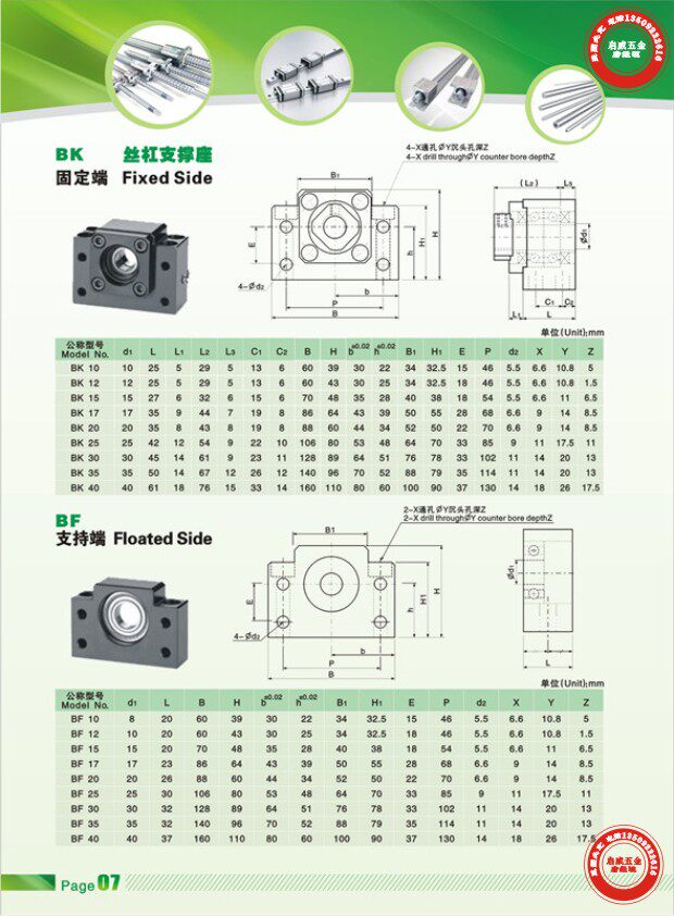 启威机电现货供应滚珠丝杆支撑座批发,价格更有优势,质量有更有保障!欢迎新老客户前来洽天业务。高精度支撑座,精度为C5,可配研磨丝杠进口丝杠使用,更多型号支撑座请来电咨询:0796-87891219 13509222616唐经理 QQ:84108830 283867113 精密滚珠丝杆支撑座 支撑座分为:固定侧跟支撑侧两部分,买家最好是用一组,这样效果会更好,支撑座里已经包含了一些小配件。 可根据客户选用的支撑座加工滚珠丝杆两端!以便买家可以直接装上使用。 滚珠丝杆支撑座BF系列-BF10/12/15/17/20/25/30/35/40 丝杠轴承座 欢迎前来订购。 本店品种规格齐全,很多规格没有上传,机械传动件非标量多可以来图来样定做
