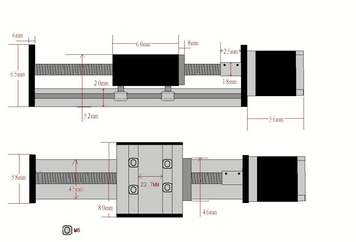 直线滚珠丝杆导轨滑台 总长(含电机)500MM 有效行程425MM