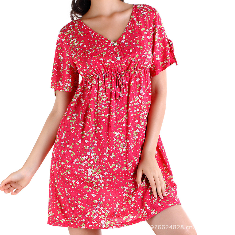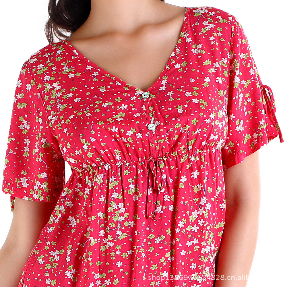 厂家供应 品牌家居服 全棉睡衣 田园碎花女士短袖睡衣睡裙13-8233