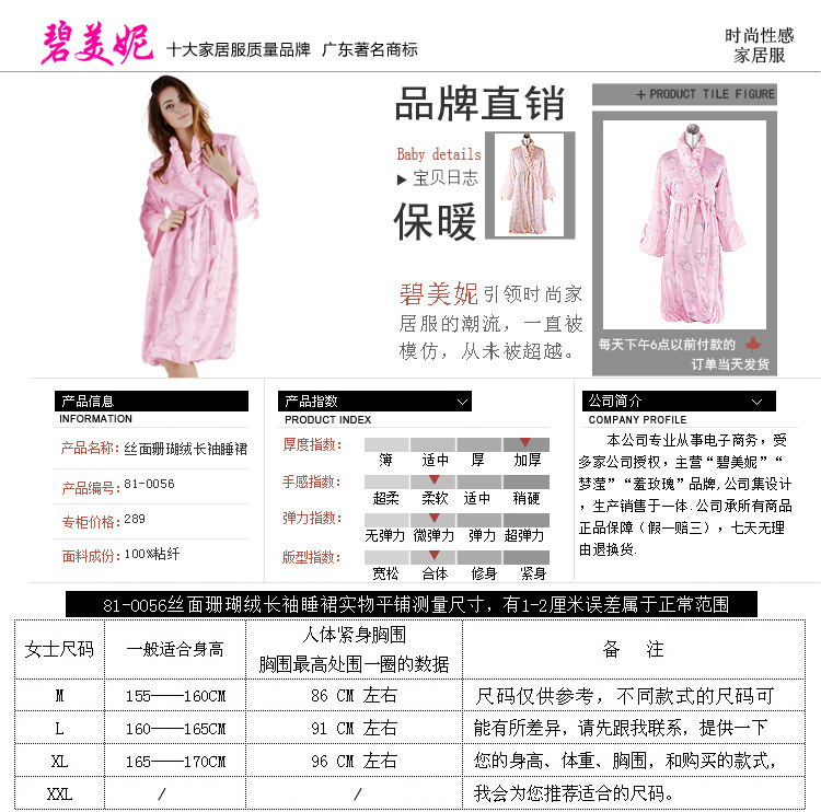 碧美妮春秋女士保暖睡衣 双层珊瑚绒睡袍 珊瑚绒睡衣家居服0056