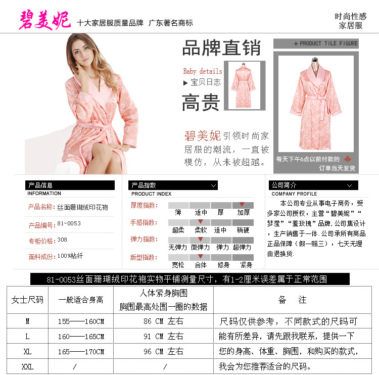 特价碧美妮秋冬新款女士双层珊瑚绒保暖睡衣家居服珊瑚绒睡袍0053
