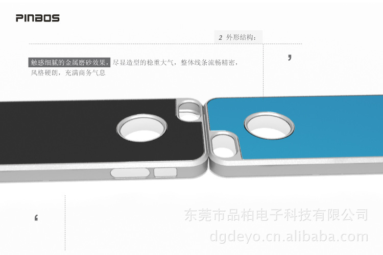 东莞市品柏电子科技有限公司是一家集研发、生产、销售数码时尚配件产品为一体的新型高科技企业,公司主要为苹果、SAMSUNG、LG、MOTO等全球知名品牌提供周边配件,目前主打产品有:ipad2和iphone4/4S、ipphone5(金属磨砂系列、金属拉丝系列、流砂系列、纳米镀膜系列、满天星系列、炫彩雨珠保护壳系列、磨砂揉面保护壳系列、真皮保护壳系列、TPU清水套系列、硅胶保护套系列)及相关产品。所有产品采用德国进口优质材料制作、超薄精美的吻合设计、独特的技术工艺。