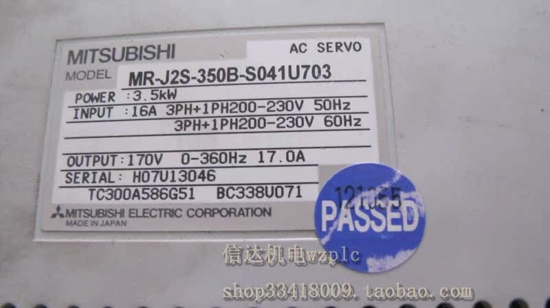 二手三菱伺服驱动器MR-J2S-350B-S041U703,功率为3.5KW的特殊型号,功能都完好的,保修三个月,图片为实物图。