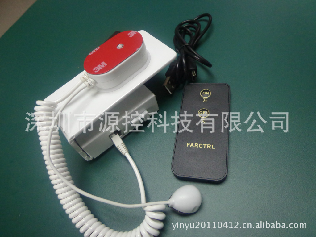【产品外观】独立支架【产品尺寸规格】整个支架:高150mm,传感器直径70mm,底座直径100mm。 支撑杆:椭圆形,上直径27mm,下直径34mm。【产品可选配件】声磁解锁器(亲们注意了,十台以上配送解锁器一个,十台一下需另行购买哦!)【产品简介】手机防盗器FC000160B专业为手机防盗展示设计与开发的一款独立支架的产品。 批发热线:尹先生13410048667 QQ56879748 602838188欢迎各位莅临公司参观考察!公司名:深圳市源控科技有限公司地址:深圳市宝安区西乡银田工业区一格商务大厦5B01适用范围1.适用场景:适用于手机大卖场、电信移动联通营业厅、电子数码城、数码相机专柜、GPS专柜、MP4专柜、家电大卖场、超市及各类博览会的产(样)品展览会场。尤其适用于产品集中陈列的卖场。2.相关设备适用产品:手机、MP3、MP4、电子词典、高档耳机、笔记本电脑、数码相机、复读机、GPS导航仪、平板电脑等数码产品,以及高档化妆品和高档工艺礼品等产品。【手机防盗器】安装使用☆断线报警:剪断连接展机的任意连线主机报警。☆传感器报警,强行摘下展机背面的传感器主机报警。☆过门报警, 如果强行拆下主机,经过防盗天线时,主机报警, 防盗天线也会报警.☆状态指示:LED绿灯,工作正常。LED红灯,报警。☆状态测试:声磁解锁器可测试防盗器状态,更稳定。☆低功耗设计:待机时间长达1年手机防盗器】功能介绍☆产品安装:揭去产品底座3M胶,固定与平面展柜台。☆手机安装:揭去产品传感器3M胶,粘贴手机。☆报警设防:声磁解锁器正对主机底座发射信号标志,5cm 以内,轻按“关锁”键,主机指示灯变绿色,即报警器设防。☆报警解防:防盗器报警后,声磁解锁器正对主机底座发射信号标志,5cm 以内,轻按声磁解锁器“”键,即可解防。☆报警测试:声磁解锁器正对主机底座发射信号标志,5cm 以内,轻按“关锁”键,主机指示灯变绿色,然后轻按“测试”键,即可进行报警测试。轻按“”键,即可关闭报警测试。
