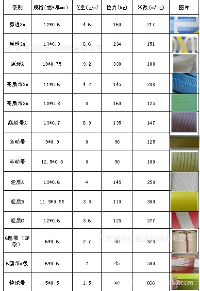 广东桥兴达包装材料有限公司常规生产包装带规格及参数