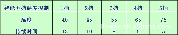 3、?微电脑芯片控制器,五档LED温控面板,可根据不同地区调温在(45℃-75℃之间);