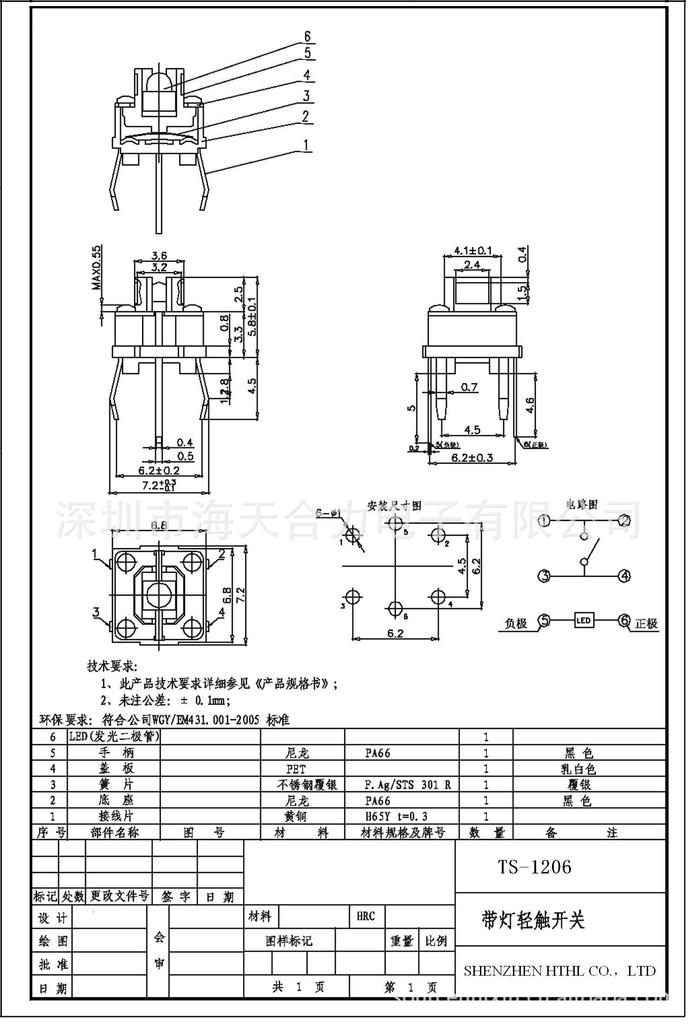 厂家供应HTHL环保耐高温带灯轻触开关6*6