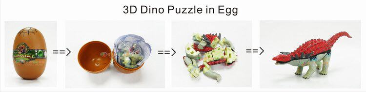 恐龙拼装系列产品用的是环保材料的,通过3C认证产品.属于益智玩具,蛋里的恐龙一块一块相互拼插组成的,并附有说明书,在拼插的过程中,锻炼小朋友的手、眼的协调能力,促进了大脑的发育。每当完成一个小作品时,小朋友都非常有成就感,同时小朋友们又能比赛看谁组装得快,在玩的过程中自信心在不断提升!
