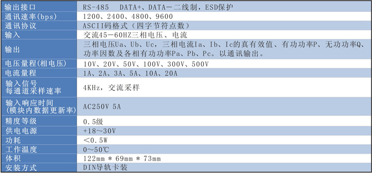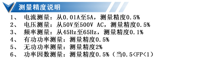 ※:电压、电流、有功功率、无功功率、功率因数的精度,都是以全量程为标准。