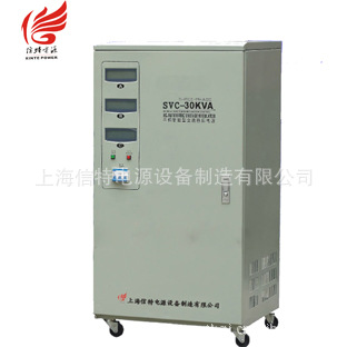 ※产品概述:SVC系列单、三相高精度全自动交流稳压器(稳压电源),由接触式自耦高压器、伺服式电动机、自动控制电路等组成,当电网电压不稳定或负载变化时,自动采样稳压器控制电路发出信号驱动伺服电机,调整稳压器自耦调压器碳刷的位置,使稳压器输出电压调整到额定值并达到稳定状态。