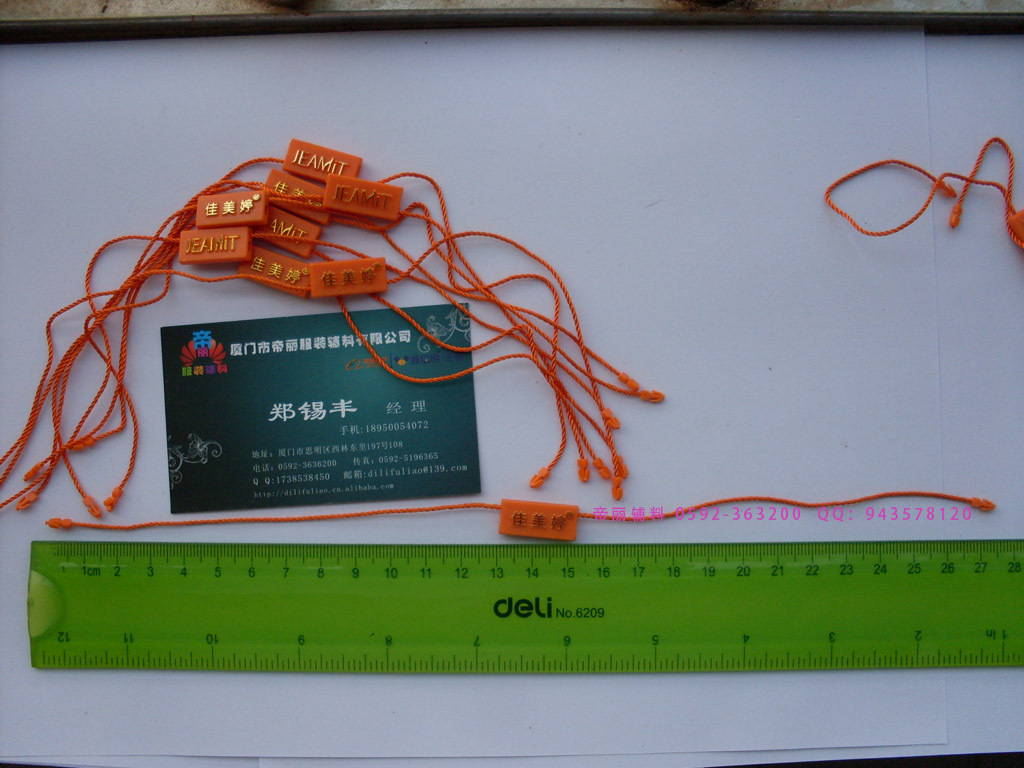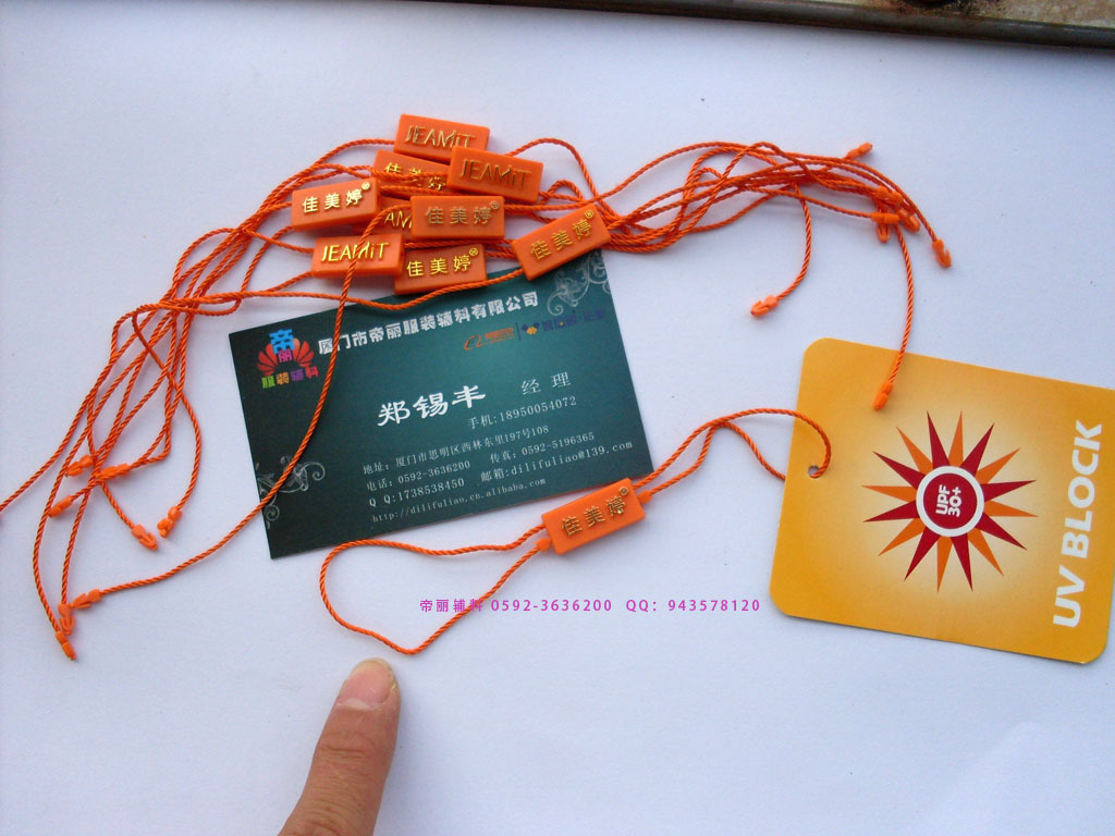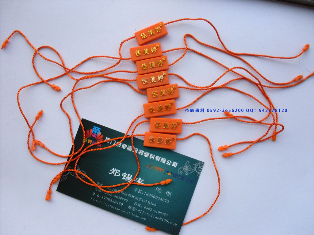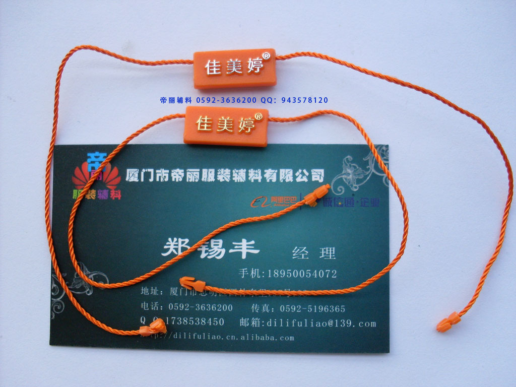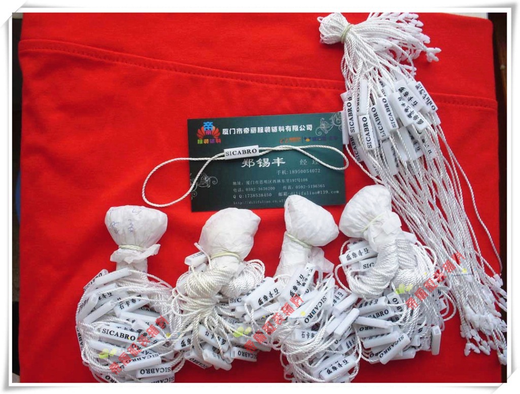 【厦门市帝丽服装辅料有限公司简介】厦门市帝丽服装辅料有限公司成立于2006年,2010年通过工商局注册.工厂本来是做厦门各企业的OEM加工,现在正式开展业务。一线厂家的价格绝对是行业最有优势的企业之一! 工厂业务: 吊粒 吊绳 吊牌 子母扣 胶针 扎带 塑料扣 吊牌 宣传单画册 水洗标 布标印刷 纸张印刷 说明书 会员卡印刷 不干胶等印刷 织唛 电脑刺绣 安全别针 葫芦别针 别针吊牌线 PVC软吊牌线 手穿胶针 工字型胶针 链珠式胶针 吊牌枪等 本着高品质,送货及时,以及高品质的服务。在本地和全国各地赢得了广泛的认可,在同行业中获得相对的认可。厦门市帝丽服装辅料有限公司承诺客户的满意才是我们永远的追求,我们将继续用最真诚的态度为客户创造更省心的环境。 黄小姐:0592-3636200 15805926021 业务QQ:1738538450 郑小姐:0592-3636200 18759236200 业务QQ:2356215961 吴小姐:0592-8709866 18950054072 业务QQ:445188363 郑经理:0592-8378529 18950054021 业务QQ:867961355