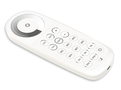 RF遥控器实现远程调光、快捷亮度选择、DIY情景模式等功能;遥控器触摸色环调节亮度简单人性化,并具有独具创意的LED同步变化状态灯, 用户观看遥控器就可以对远处的LED灯具工作状态了如指掌!