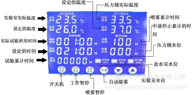 15、喷雾暂停:按下此按键,喷雾将暂停,但实际试验所用时间和喷雾时间不会暂停。