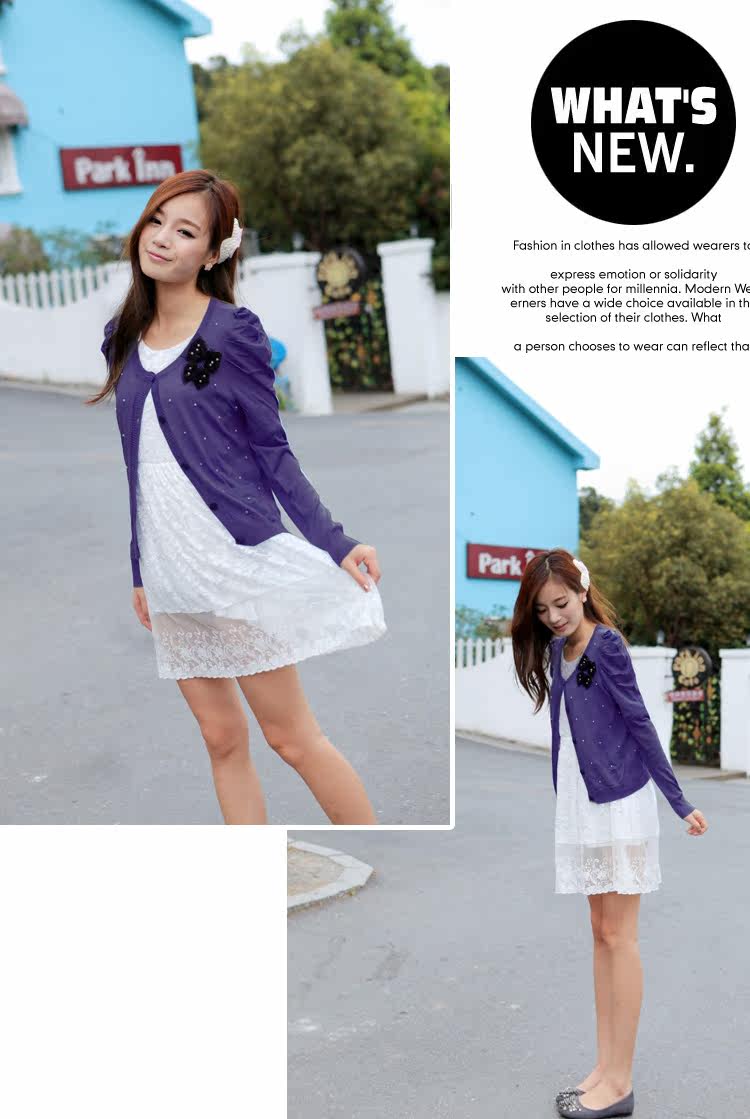 厂家直销 2013长袖韩版针织衫女 中长款泡泡袖针织衫 镂空开衫女