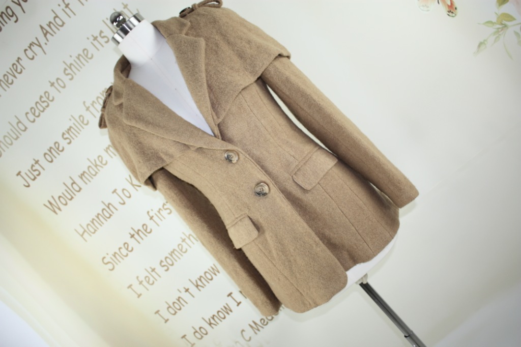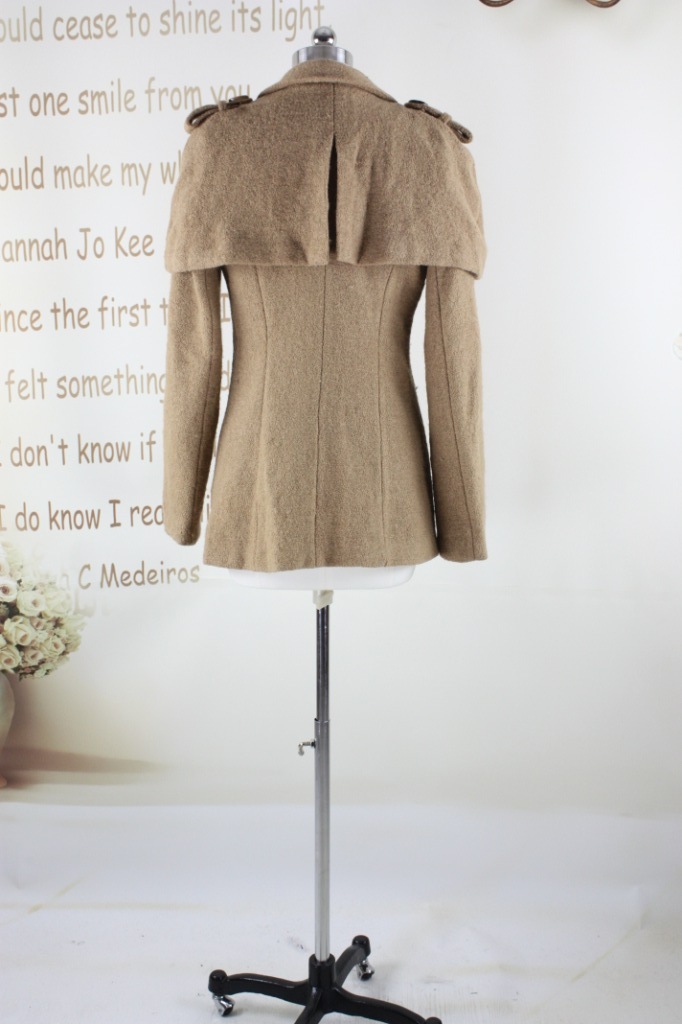 批发 韩版女装斗篷式披肩小口袋单排扣修身毛呢大衣外套811