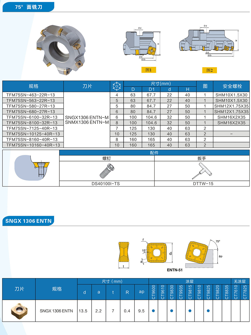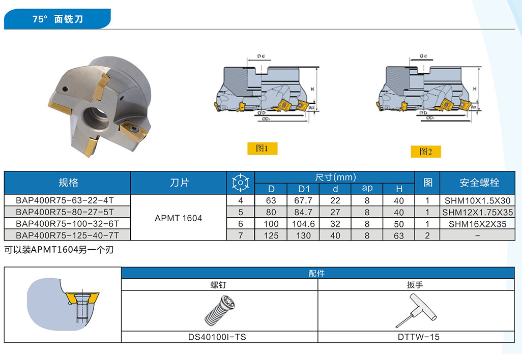 产品描述:75°面铣刀盘,装APMT1604刀片