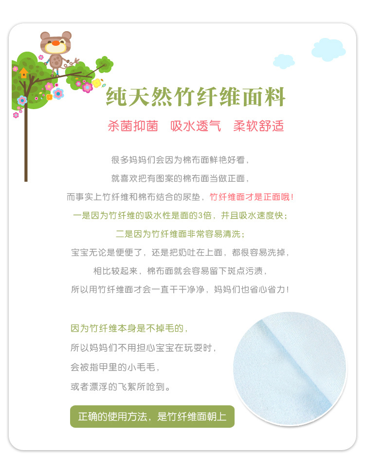 竹纤维不带自由电荷,不会产生静电;富含多种维生素,能改善人体微循环、疏通经络、调节神经。