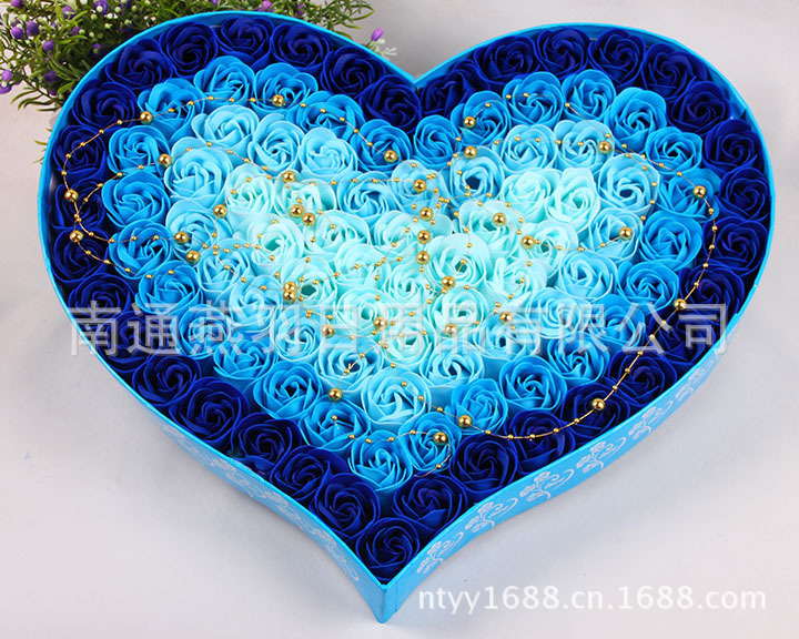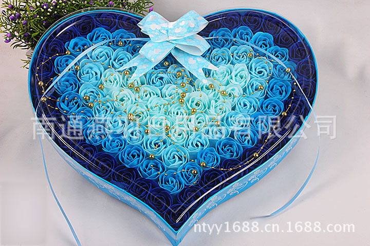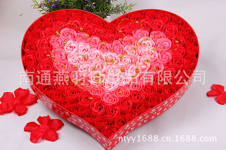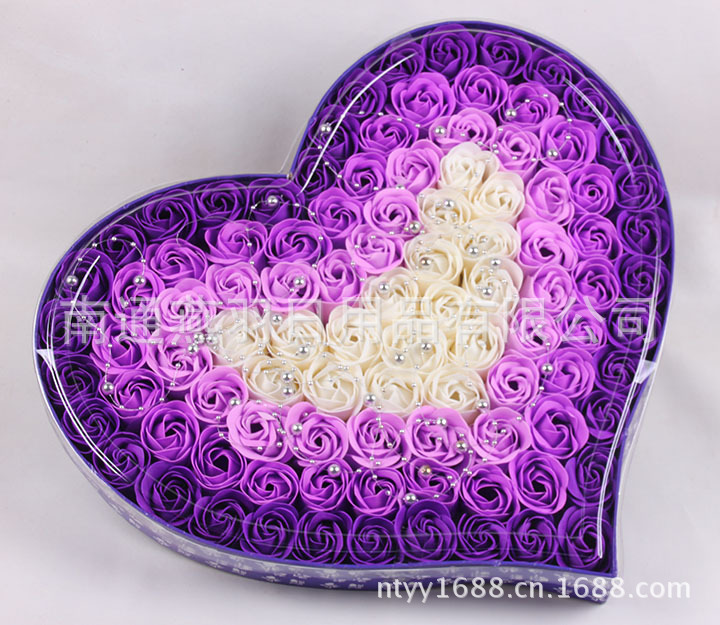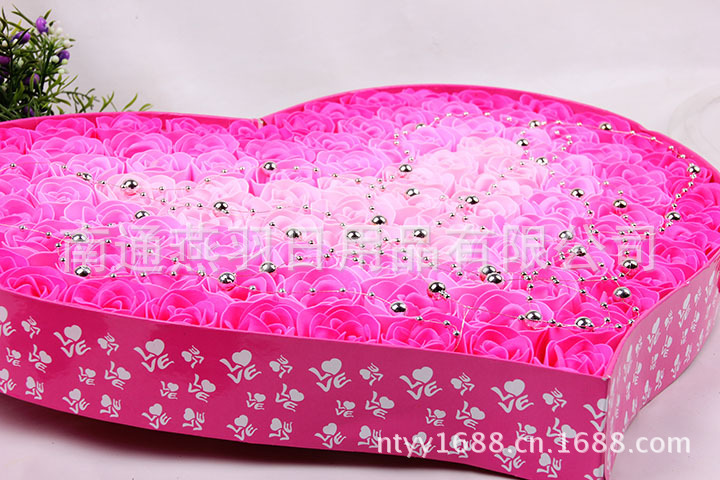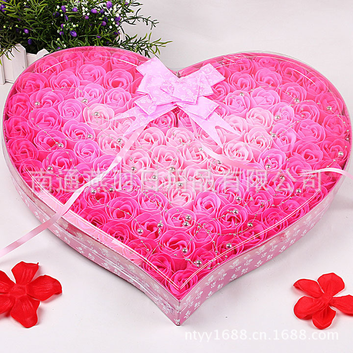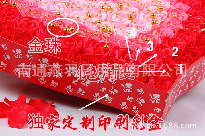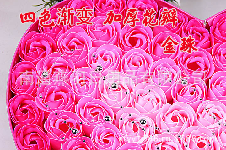 名称:100朵加厚款4色渐变+金珠心形透明盖玫瑰香皂花礼盒
