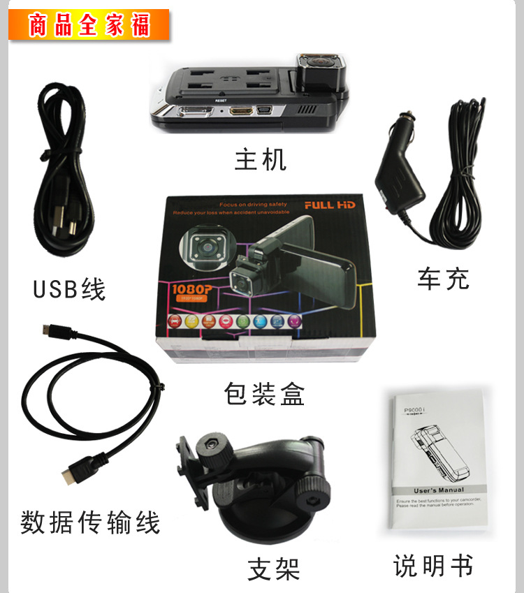 | 配件 | 支架,USB数据线,车充,HDMI线,说明书,彩盒 |
