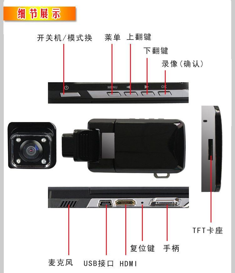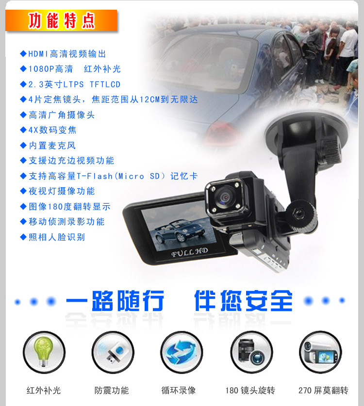 | 产品名称 | 2.0寸汽车行驶记录仪/汽车黑匣子 |