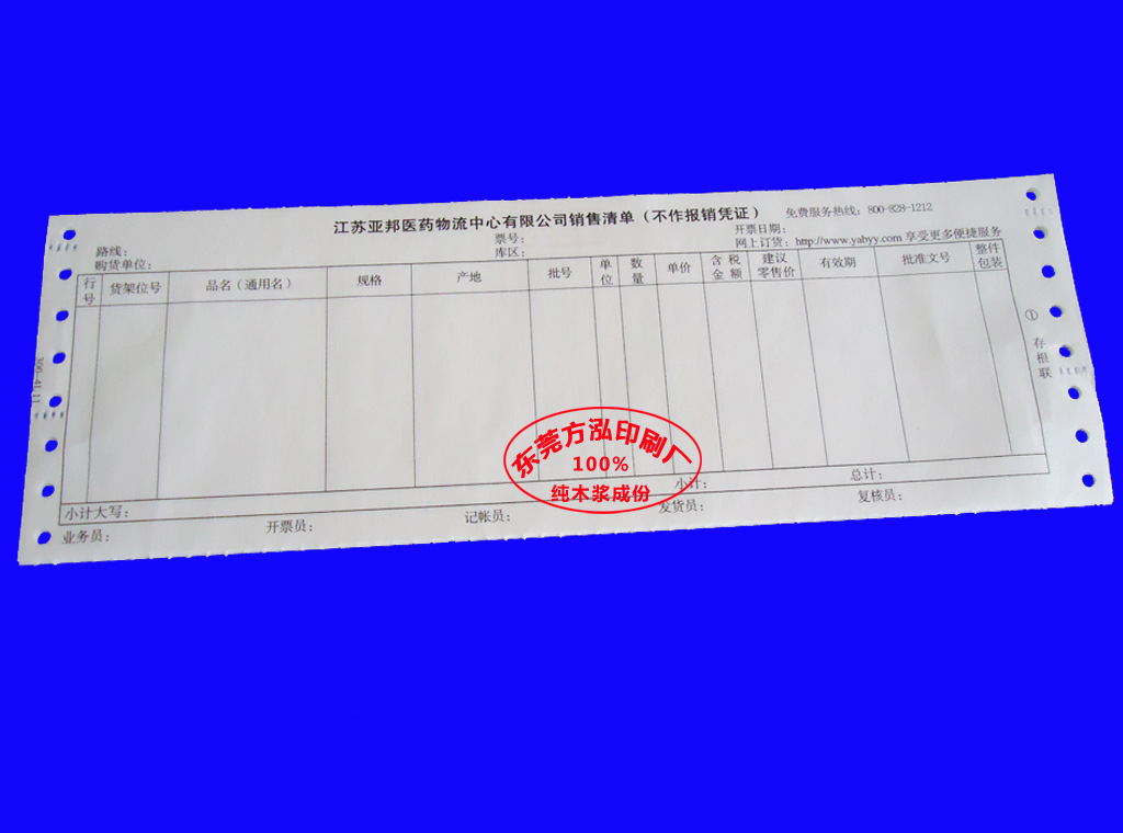 电脑连单,用无碳复写纸制作,一般都用两联以上,纸张颜色可区分开。纸张上面可以预印表格或内容。主要用于单位的送货单、地磅单、门店的售货单、合同书、工作联系单等场合。电脑多联无碳连单是企业营业的好帮手,方便企业的管理,提高企业效率。
