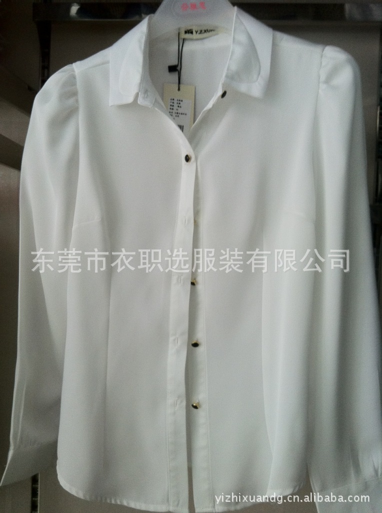 白色长袖雪纺衬衫批发定做厂家,白领族定做套装厂家 白色衬衫 雪
