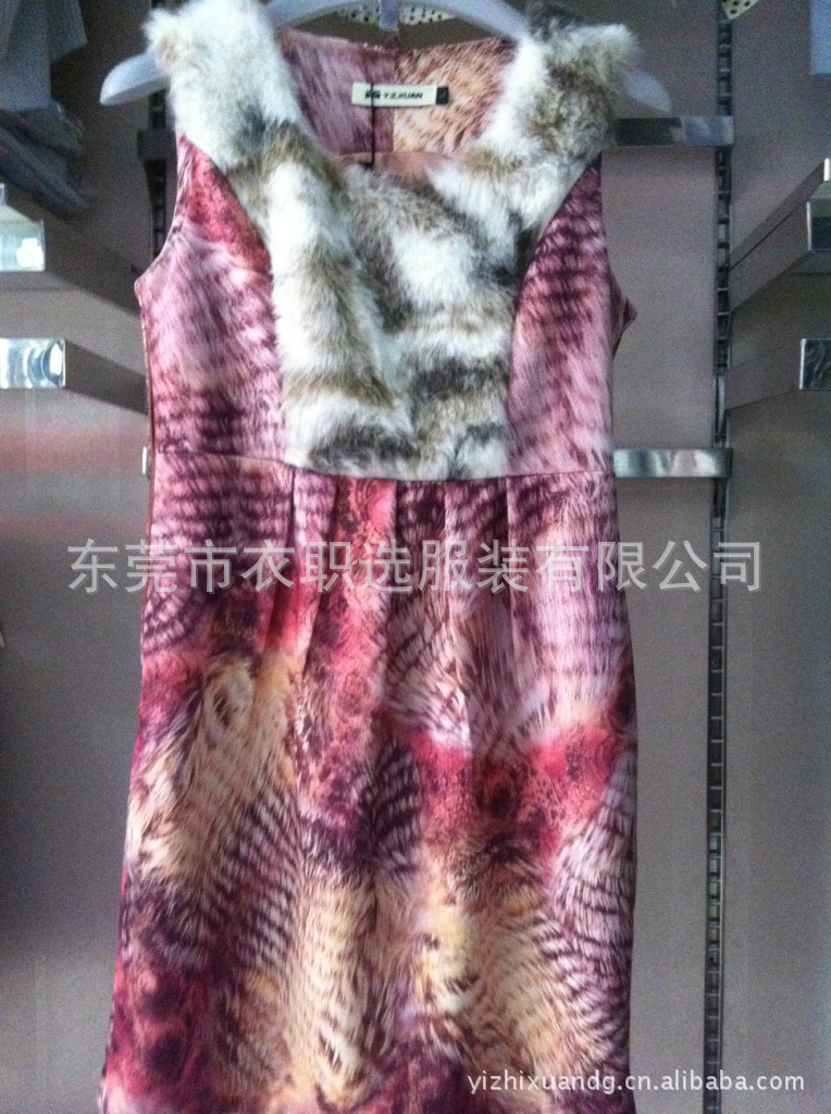 厂家直销中年连衣裙蛇纹长袖连衣裙,东莞衣职选厂家