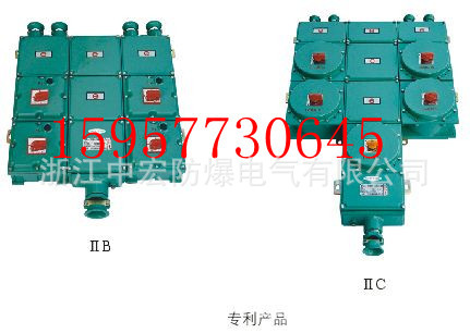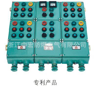 适用范围及产品特点 1.爆炸性气体混合物危险场所:1区,2区。 2.爆炸性气体混合物:IIA,IIB,IIC。温度组别:T1~T6。 3.产品特点 本产品为复合型,开关箱采用隔爆型结构,母线箱及出线采用增安型结构。 4.铸铝合金外壳,压铸成型,内装高分断小型断路品,并可装漏电开关,具有过载短路保护功能。 5.采用模块结构,各种回路可以自由选择,组合。 6.有特殊要求可特制,可按用户要求特制成粉尘防爆。 7.钢管或电缆布线均可。 订货须知,用户在订货时,须注明配电箱的回路数、回路电流及短路器的极数,若带总开关则需注明总开关电流及极数,并注明进出口方向、数量、大小。若照明、动力及漏电等混配时,则需提供原理图。
