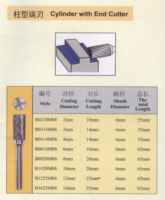硬质合金旋转锉刀主要在气动或电动驱动工具上使用,转速一般为6000-50000转/分,使用时把刀具夹紧夹正,切削方式以逆铣为好,避免往复切削,工作时应防止切屑飞散,请用防护眼镜。