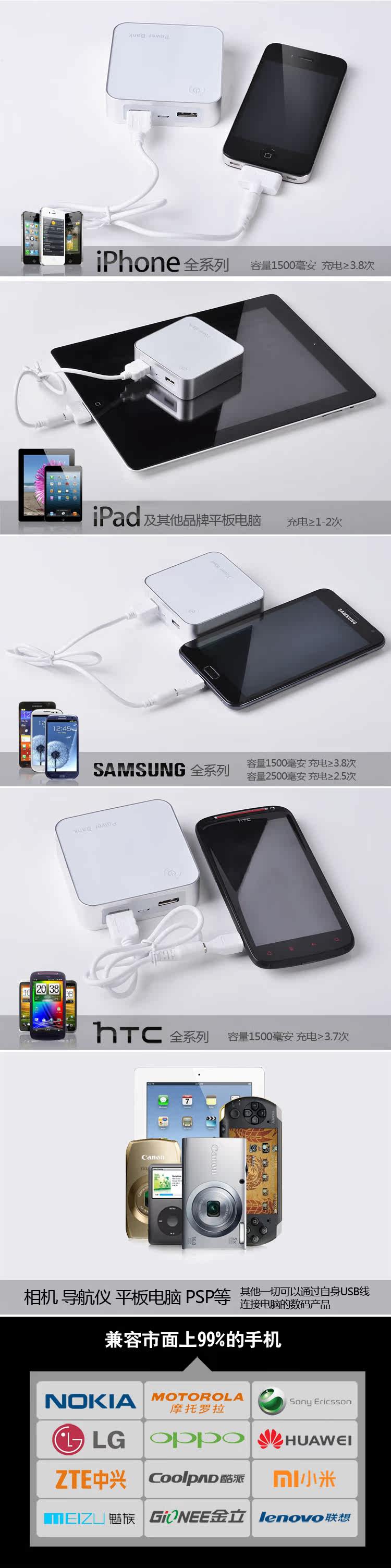 【产品型号】佳翼Y113(智能单片机软件控制目前最前沿安全稳定的技术方案)【适用机型】几乎所有USB能为之充电的手机、平板电脑、MP3、MP4、数码产品、iPhone、iPad、三星GALAXY/NOTE系列及ThinkPad平板电脑等都适用。【相关参数】输出电压标准5V、电流:1000\1500mA;输入电压标准5V(Micro USB)本产品拥有1A和1.5A输出口,请根据您的设备选择,如果使用1A输出口给设备充电时指示灯工作不久灭掉,则需要更换另一个1.5A输出口。【售后服务】一年免费保修;第一个月内有质量问题由我们承担来回运费退换。【其它特点】工厂直销,价格极具优势,售后服务真正有保障;体积小巧,拿着很方便很顺手;采用全新原装电芯生产;使用当前最前沿的单片机软件智能控制方案、安全可靠、稳定耐用;能量转换效率达到90%以上,承诺假一赔三。