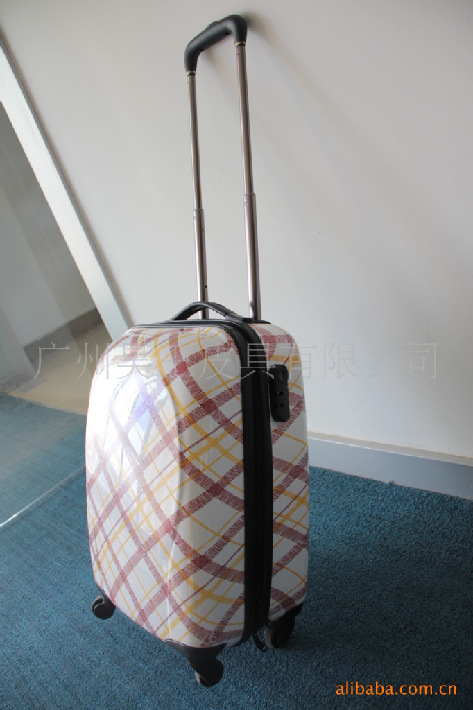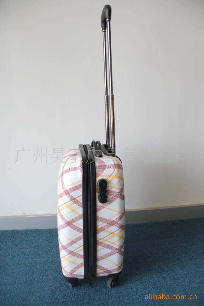 2、产品介绍:PC拉杆箱,拉杆为高级铝合金拉杆,拉杆轮轴承材质为PP360度万向轮,结实耐用耐磨损。此箱为拉链设置,第一层拉链内有拉链式网袋,独立挂衣环及松紧带,可放置衬衫等随身物品,第二层拉链为主箱体,内有放置衣物的弹性织带,拉链式网袋。内衬为210D加密里布。配有装饰金属LOGO的拉链头及密码锁。方便管理随身物品。可随机携带。