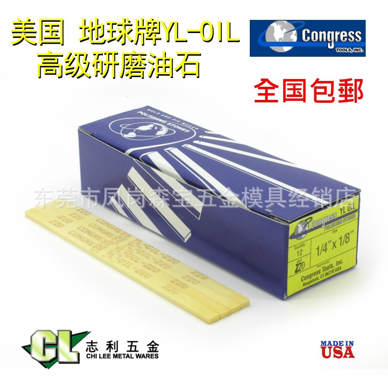 美国Congress地球牌油石- 1/2x1/8x6 YL-OIL 高级研磨油石条 220#