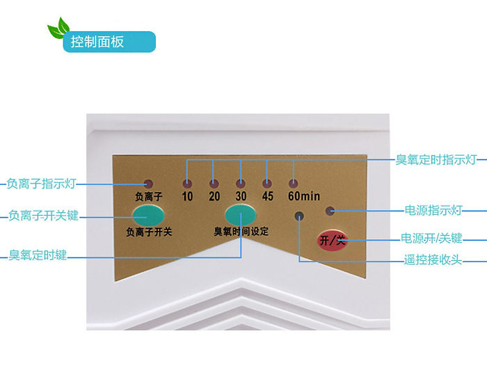 4、臭氧、负离子分别可以单独工作,也可同时工作,微电脑控制,摇控定时设置
