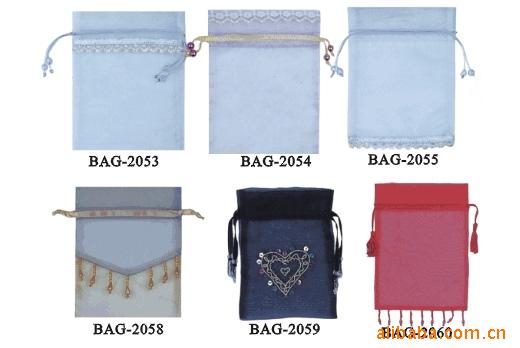 6.各种精致礼品装饰袋,如:珍珠纱袋、色丁布袋、绒布袋、金葱布袋、网布袋、棉布袋、麻布袋、PVC袋、环保购物袋、化妆袋、烫画袋、烫钻袋等。