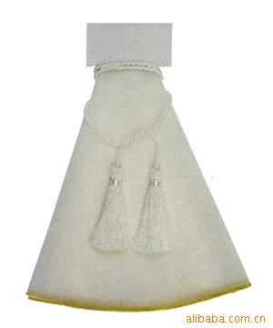 5.可供选择的拉绳/拉带材料:流苏,缎带,韩国丝,扭绳。缎带拉带上可按 客户要求烫金或丝印图案。