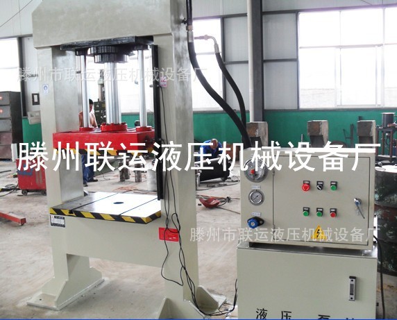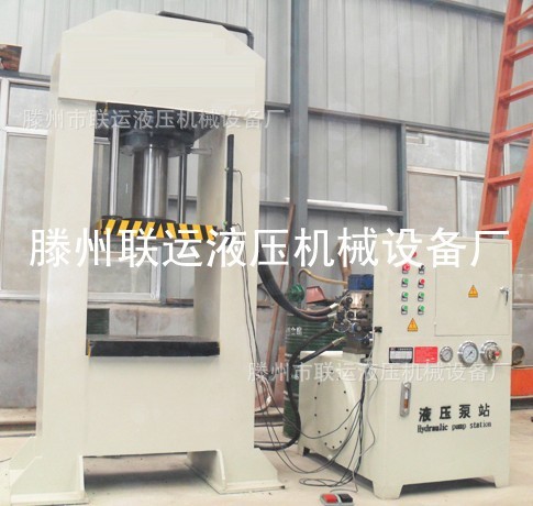 液压系统(泵站)装在主机右侧,整个液压控制系统由电机带动高压油泵输入压力油,通过溢流阀、电磁阀、压力表、管路等输入油缸,使油缸柱塞实现上下往复运动。