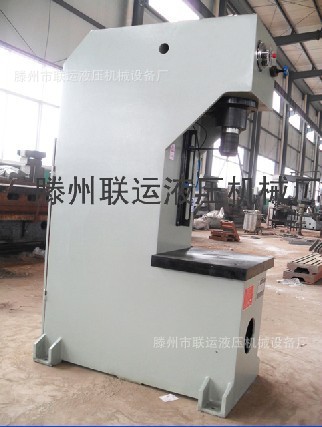 该设备又称C型液压机,钢性好,结构简单操作方便,特点是为开式结构,可以三面接近工作区,因此装卸模具和工作方便,整机部分介绍如下: