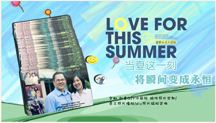 1) 背面带有强磁性,可吸附在任何金属的表面,具有装饰家居,美化家器的作用,将其贴在冰箱、微波炉、饮水机等带铁的地方,可夹留言纸