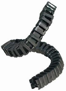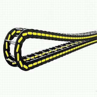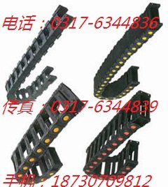 (3)单元链节由左右链板和上下盖板组成,拖链每节都能打开,装拆方便,不必穿线,打开盖板后即可把电缆、油管、气管、水管等放入拖链。