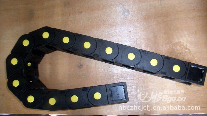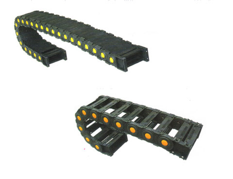 (3)单元链节由左右链板和上下盖板组成,拖链每节都能打开,装拆方便,不必穿线,打开盖板后即可把电缆、油管、气管、水管等放入拖链。