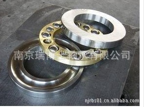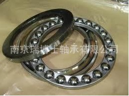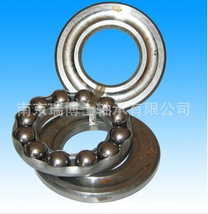推力球轴承由一列钢球(带保持架)、一个轴圈(与轴紧配合)和一个座圈(与轴有间隙而与轴承座孔紧配合)组成,钢球在轴圈和座圈之间旋转。只能承受一个方向的轴向载荷,不能承受径向载荷。由于轴向载荷是均匀地分布在每个钢球上,故载荷能力较大;但工作时,温升较大,允许极限转速较低。 推力球轴承不能限制轴或外壳的径向移动,但可限制轴和外壳一个方向的轴向移动,因此,此类轴承通常与深沟球轴承联合使用。安装时,轴和外壳孔的轴线必须保持同心,否则将由于应力集中引起轴承过早损坏。为了消除这一不良现象,可在座圈外径和外壳孔之间留0.5~1mm的径向间隙。轴中心线与外壳支承面应保证垂直,不允许轴发生倾斜和挠曲,否则也会由于载荷分布不均匀引起轴承过早损坏。为消除轴承轴线的倾斜,可在座圈的支承表面上垫以弹性材料,如耐油橡皮、皮革等,或采用带球面座的推力球轴承。 推力球轴承是分离型轴承,根据其结构形式分为单向推力球和双向推力球轴承。单向推力球轴承可承受一个方向的轴向载荷,双向推力球轴承可承受两个方向的轴向载荷。它们均不能承受径向载荷。推力球轴承还有带座垫的结构,由于座垫的安装面呈球面形,故轴承具有调心性能,可以减少安装误差的影响。 推力球轴承主要应用于汽车、机床等行业。