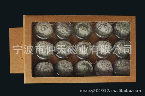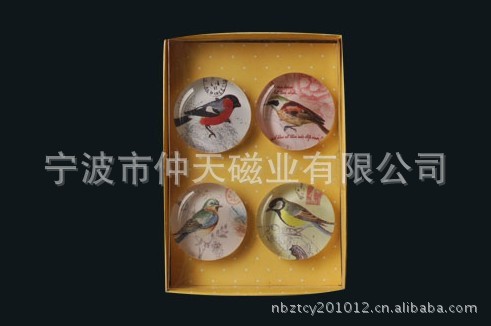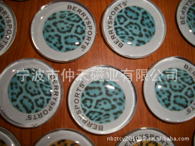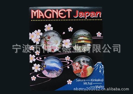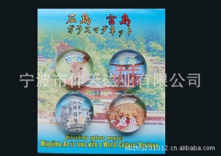 9)玻璃冰箱贴:采用下面软胶磁铁+上面铜版纸彩色印刷+半圆玻璃窗腹膜制作而成
