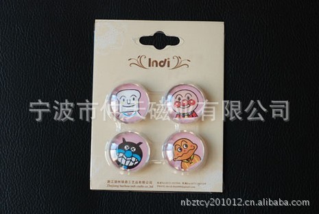 3) 磁性冰箱贴:采用下面软胶磁铁+上面铜版纸或PVC彩色印刷腹膜制作而成。