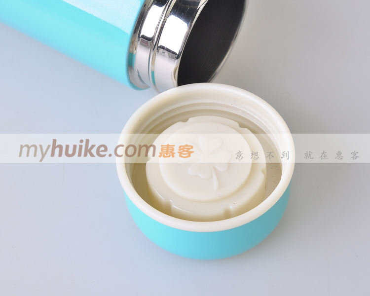 2、密封性能识别法:在杯加水后,按顺时针方向旋紧瓶塞和杯盖,把杯平放在桌面,应无水渗漏;杯盖与杯口的旋合应灵活,没有间隙。
