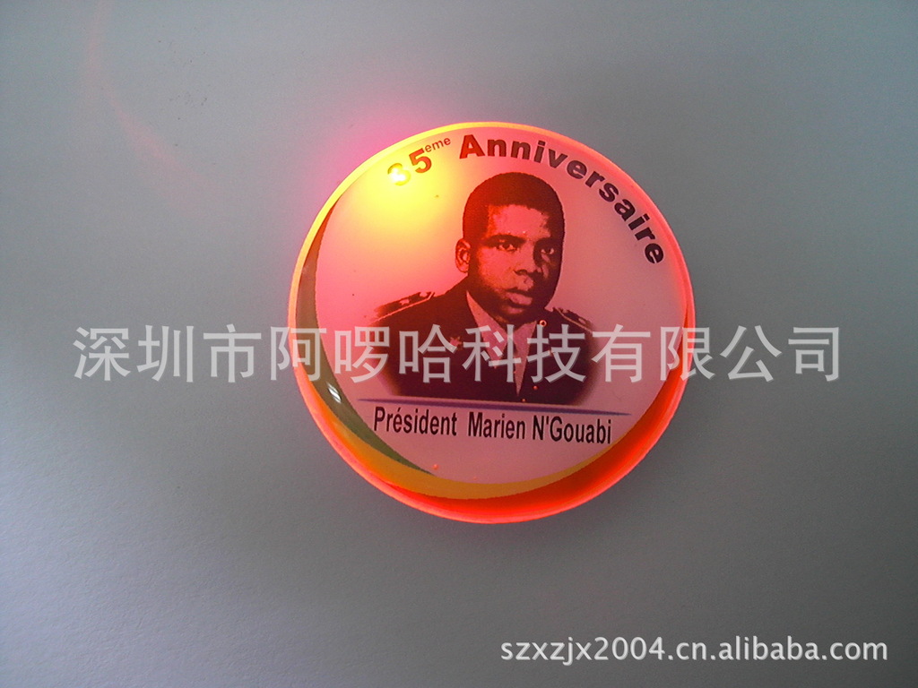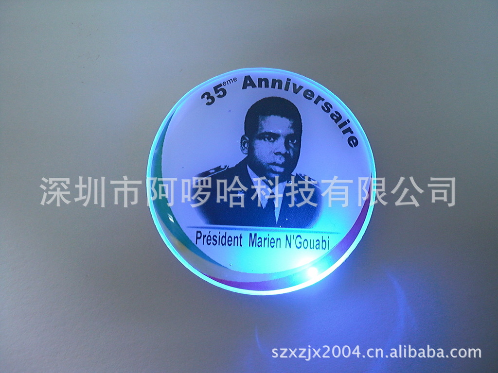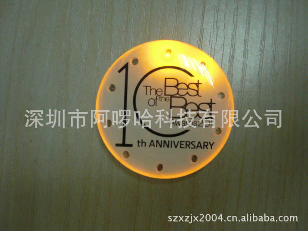 注:我司生产发光胸章多年,有丰富的胸章模板库存,可快速为你提供大货产品,且不用开模,可为您省下模具费。