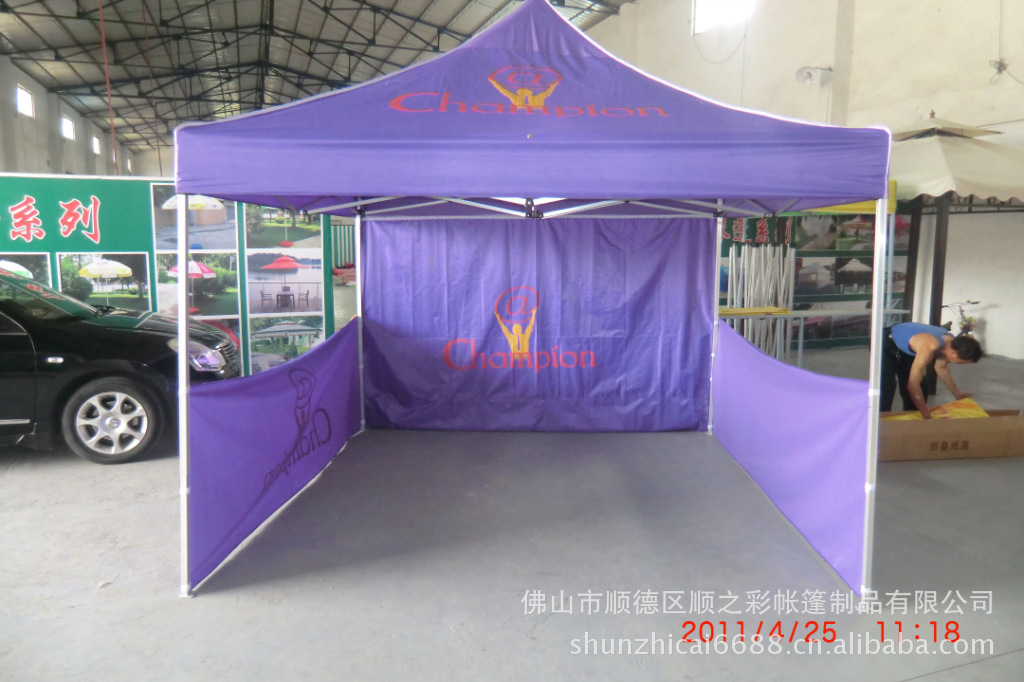 E我厂生产的帐篷顶高全为米高顶的,吊边足35CM可以做直边或波浪型边。