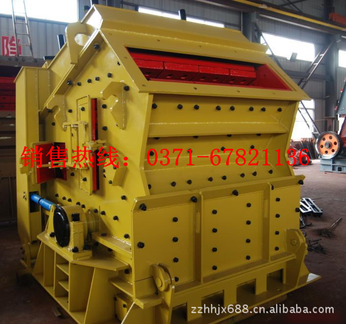 反击式破碎机利用高速旋转的转子上的板锤,对送入破碎腔内的物料产生高速冲击而破碎,且使已破碎的物料沿切线方向以高速抛向破碎腔另一端的反击板,再次被破碎,然后又从反击板反弹到板锤,继续重复上述过程。在往返途中,物料间还有互相碰击作用。由于物料受到板锤的打击、与反击板的冲击以及物料相互之间的碰撞,物料不断产生裂缝,松散而致粉碎。当物料粒度小于反击板与板锤之间的缝隙时,就被卸出。
